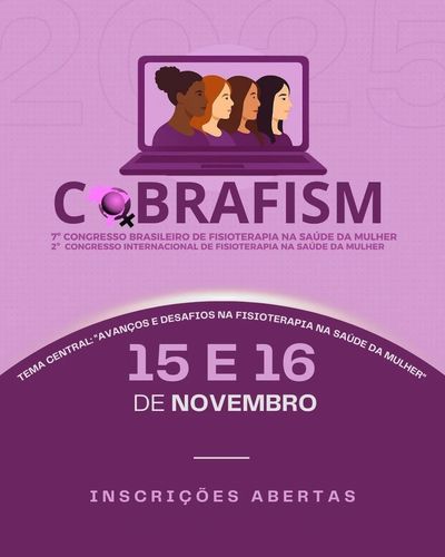 O 7º Congresso Brasileiro de Fisioterapia na Saúde da Mulher (COBRAFISM) e o 2º Congresso Internacional de Fisioterapia na Saúde da Mulher acontecerão Online nos dias 15 e 16 de novembro de 2025, com o tema central “Avanços e Desafios na Fisioterapia na Saúde da Mulher”.