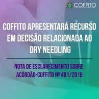 O Conselho Federal está recorrendo da sentença judicial, nos autos do Processo nº 1014957-42.2019.4.01.3400, que anulou o Acórdão-COFFITO nº 481/2016, o qual regula a técnica do agulhamento a seco (“Dry Needling”) como recurso da Fisioterapia.