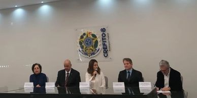 Na foto (direita/esquerda) Dra. Renata Marchon/Diretora secretaria AFB, Dr. Raphael Caetano/ conselheiro crefito 2, Dra Denise Lima/ Presidente AFB, Dra Luciana Mamede / Presidente de honra do COBRAFISM, Dr. Wilen Heil e Silva/ Presidente do crefito 2, Dra Cristine Homsi/ Diretora científica ABRAFISM / Presidente 5° COBRAFISM.